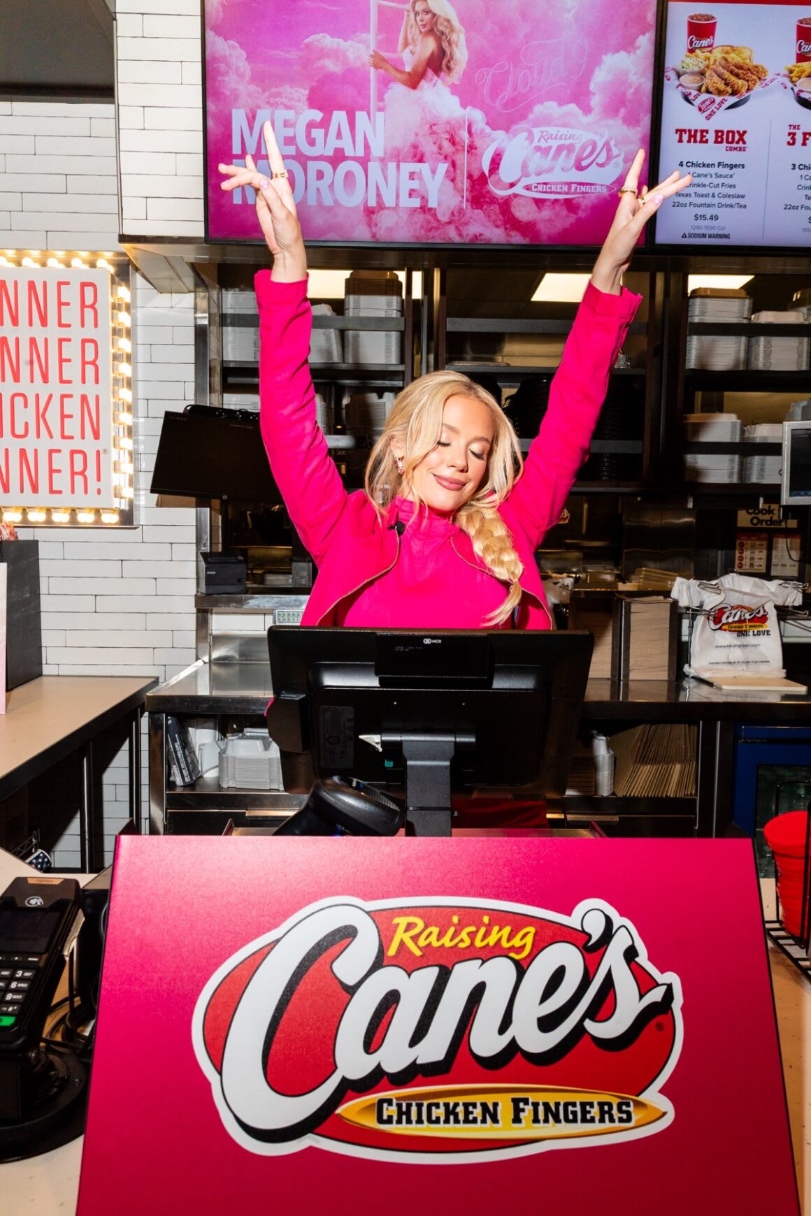 During her “Cloud 9” album listening party on February 20, 2026 at Raising Cane’s Global Flagship in NYC , Megan Moroney surprised fans and stepped behind the front counter to snap selfies and sign autographs.
