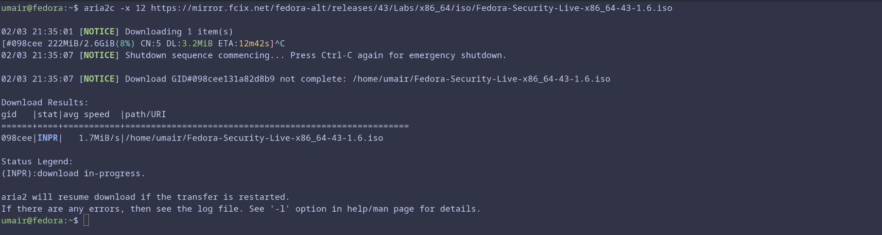 When I am downloading ISOs or anything more than 1 GB data, aria2c is the tool I trust. It recovers from interruptions gracefully and uses bandwidth efficiently. It is reliable enough that I sometimes forget how unstable normal downloads can be.