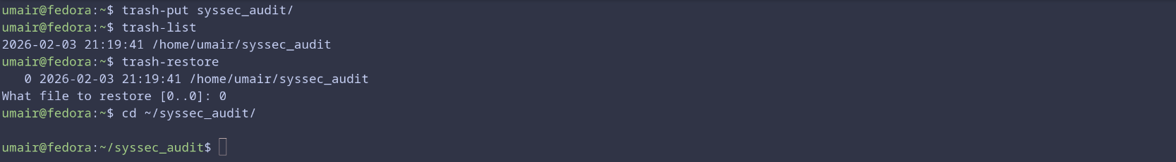 This matters most when I am working quickly or while juggling multiple tasks. I sometimes clean up directories automatically and only later realize I deleted the wrong file, usually the file I need most (a very predictable pattern in my life), but with trash-cli, recovering that file is simple.